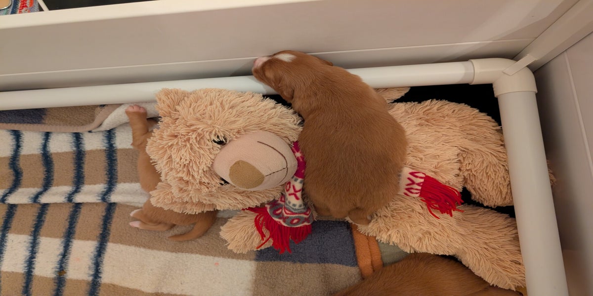 Diese Woche haben unsere Welpen einen ordentlichen Wachstumsschub erlebt. Mittlerweile wiegen sie alle bereits über 2 Kilo und entwickeln sich prächtig. Auch die ersten Zähnchen sind bereits da.